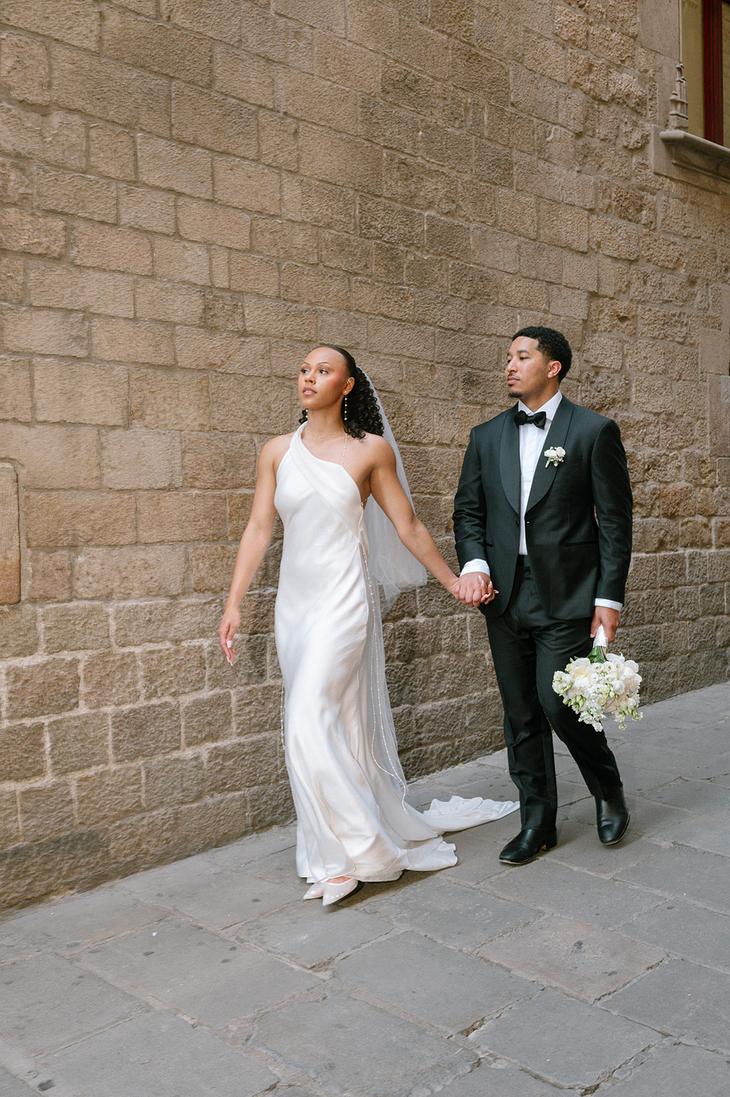 The beauty of a Barcelona elopement lies in the city’s incredible diversity of backdrops – all within walking distance of each other. We wandered from the Gothic Quarter’s mysterious alleyways to the sun-drenched plazas, capturing intimate moments that perfectly reflected their sophisticated aesthetic.